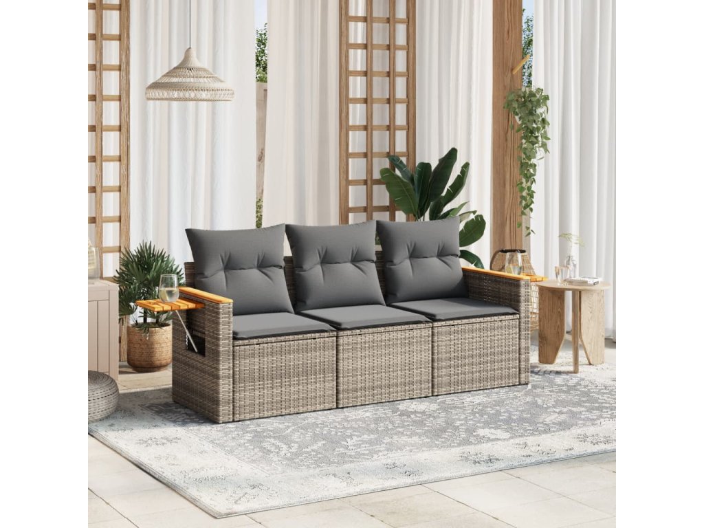 3dílná zahradní sedací souprava s poduškami šedá polyratan 3226599