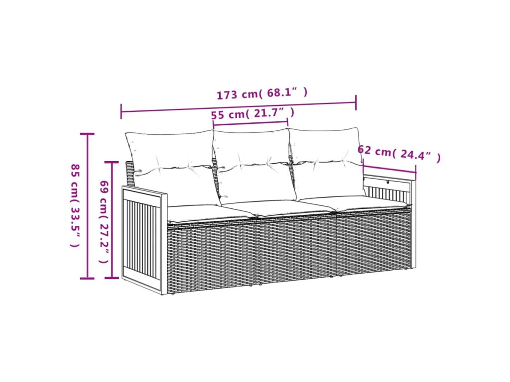 Tato zahradní sedací souprava je dokonalým doplňkem vaší zahrady, terasy nebo dvorku a poskytne vám pohodlné a příjemné místo, kde si můžete povídat s rodinou a přáteli nebo jen tak odpočívat a užívat si pobyt venku.