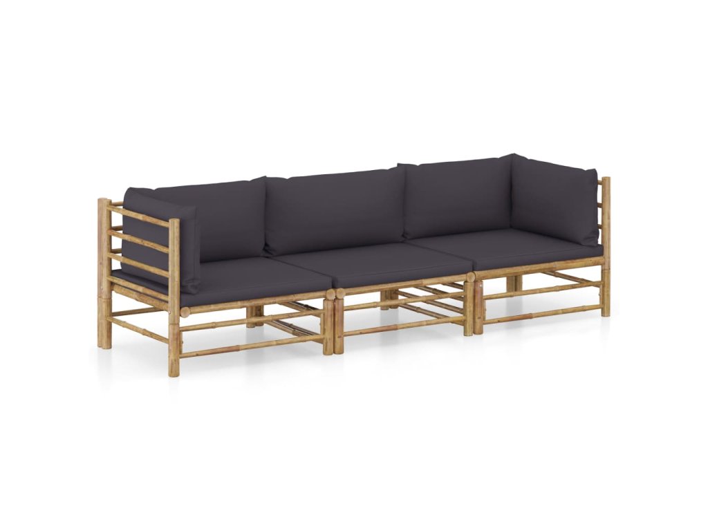 3dílná zahradní sedací souprava + tmavě šedé podušky bambus 3058204