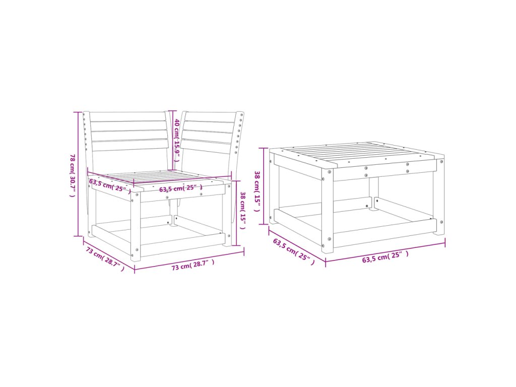 3dílná zahradní sedací souprava voskově hnědá masivní borovice 3216987