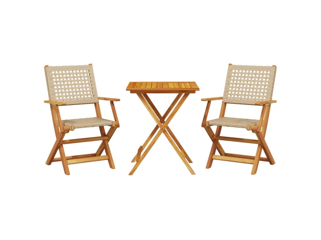 3dílný bistro set béžový polyratan a masivní dřevo 3281804