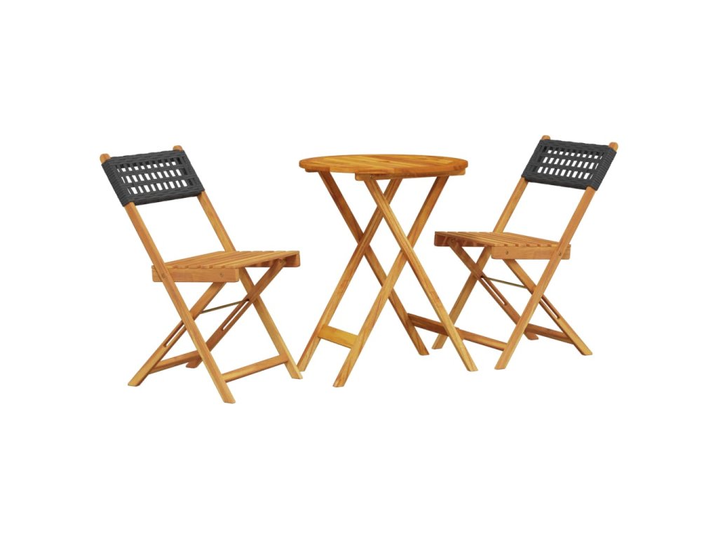 3dílný bistro set černý polyratan a masivní dřevo 3281742
