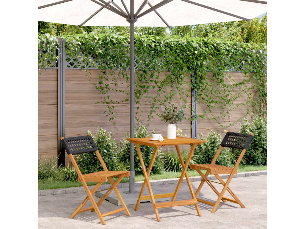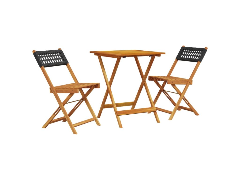 3dílný bistro set černý polyratan a masivní dřevo 3281754