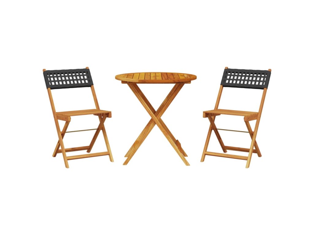 3dílný bistro set černý polyratan a masivní dřevo 3281838