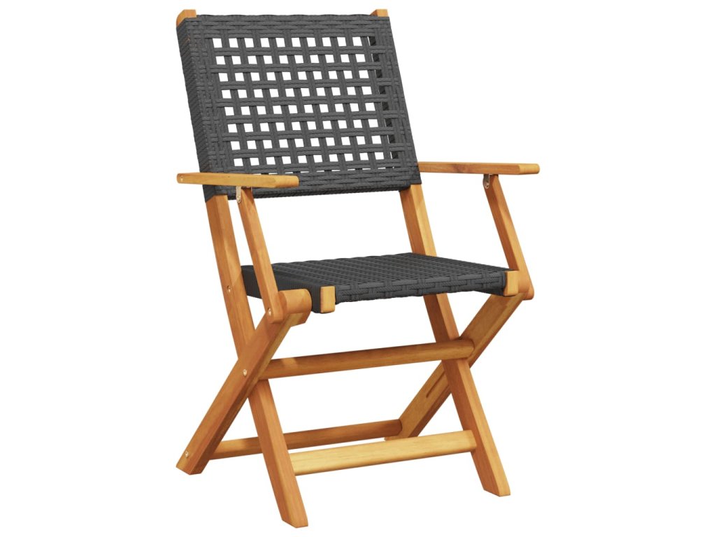 3dílný bistro set černý polyratan a masivní dřevo 3281850