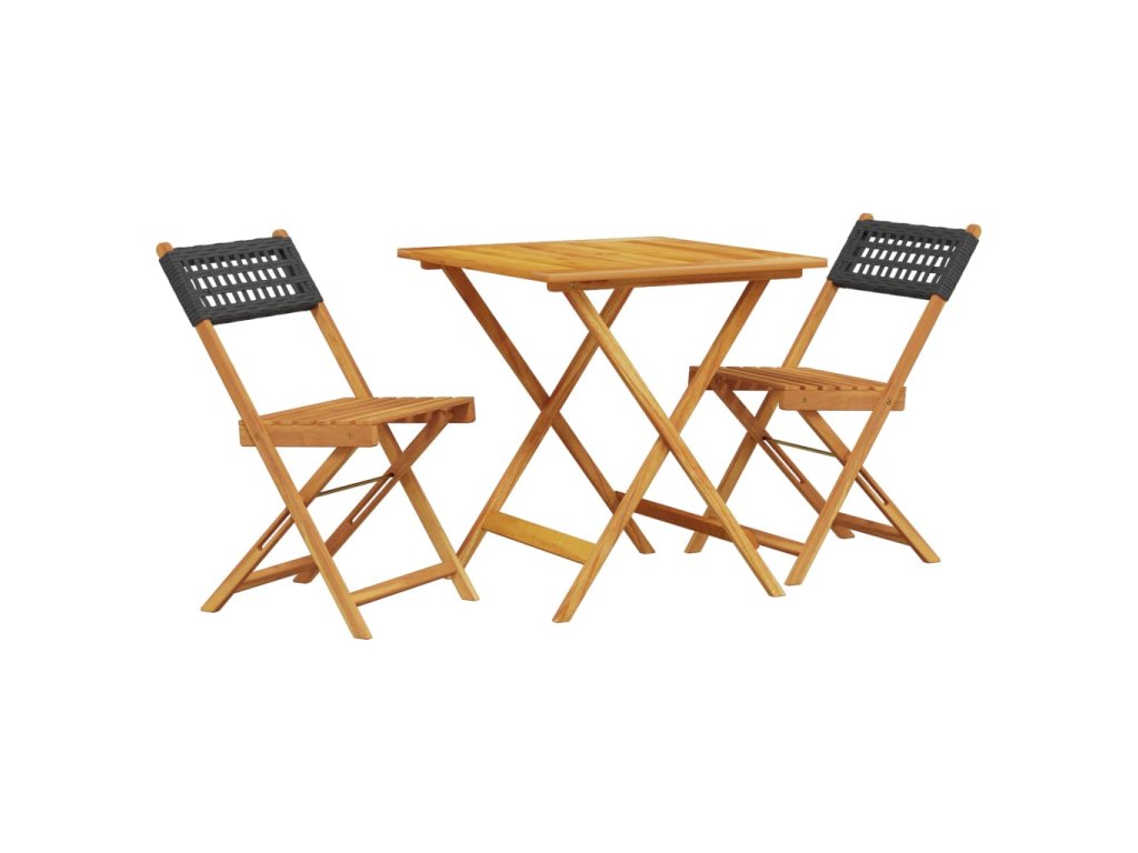 3dílný bistro set černý polyratan a masivní dřevo 3281862