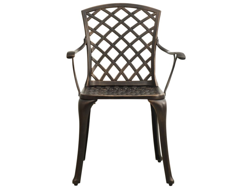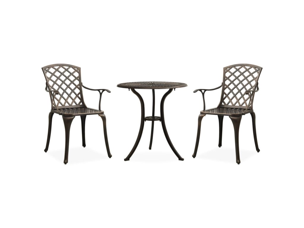 Stůl i židle jsou vyrobené z klimaticky odolného litého hliníku, takže vám vydrží sloužit dlouhá léta. Židle mají navíc vysoká opěradla a sedadla s mřížkovým designem. Ruce si můžete pohodlně opřít o ergonomicky tvarované područky. Pevná stolní deska je zdobená překrásnými vzory a skvěle se hodí k pokládání nápojů, občerstvení a dalších potřeb. Zahradní bistro set je jako dělaný pro pozdní snídaně nebo dlouhé odpolední konverzace.