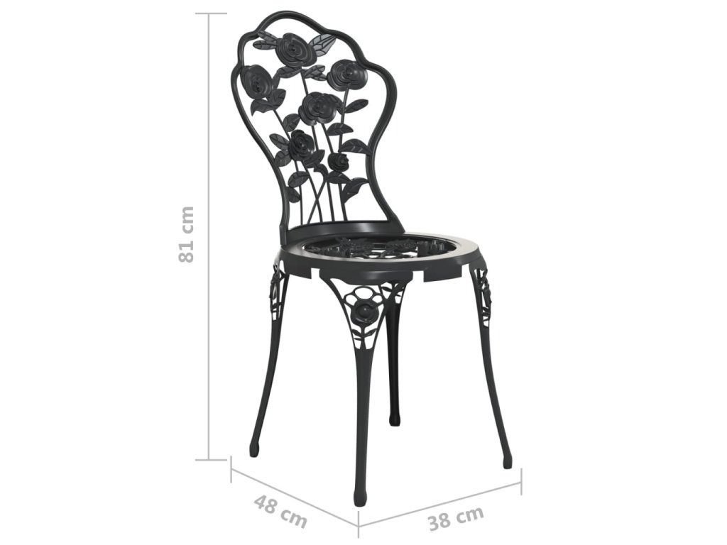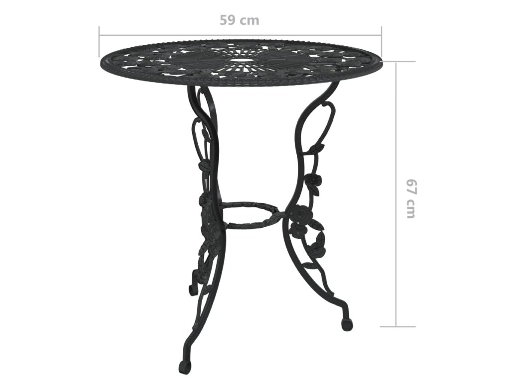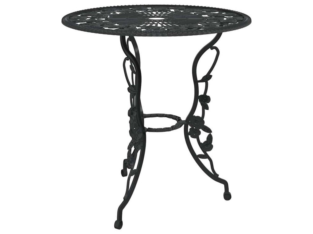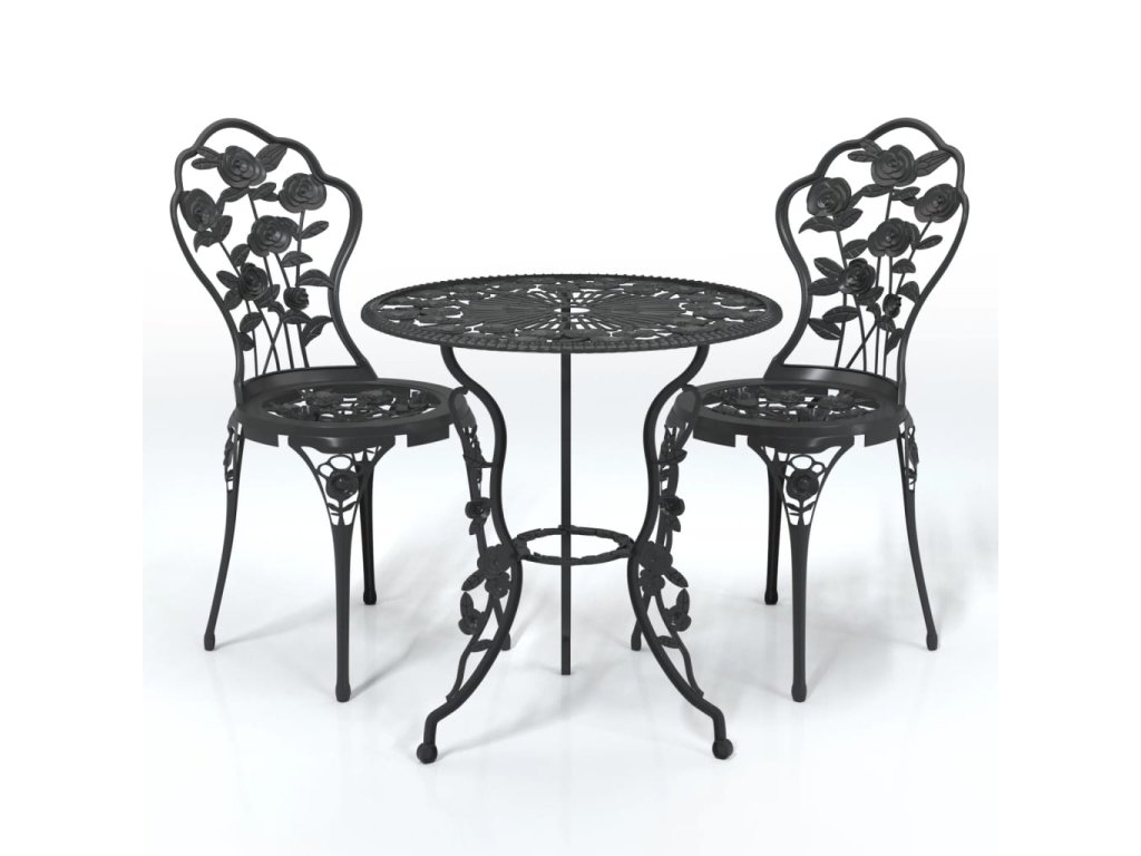 Bistro set je vyrobený z litého hliníku, který je odolný vůči povětrnostním vlivům a má dlouhou životnost. Litinové nohy dodávají nábytku na robustnosti. Do detailu propracovaný květinový vzor oživí každou zahradu, dvůr či zimní zahradu romantickým nádechem.