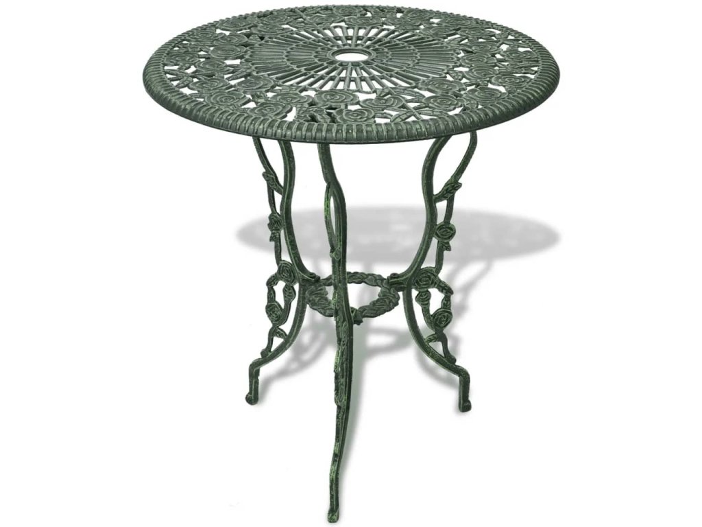 Bistro set je vyrobený z vysoce kvalitního litého hliníku, který je odolný vůči povětrnostním vlivům a vysoce rezistentní. Litinové nohy dodávají nábytku robustnost. Do detailu propracované květinové vzoru dodají každé zahradě, dvoru či zimní zahradě romantický nádech.