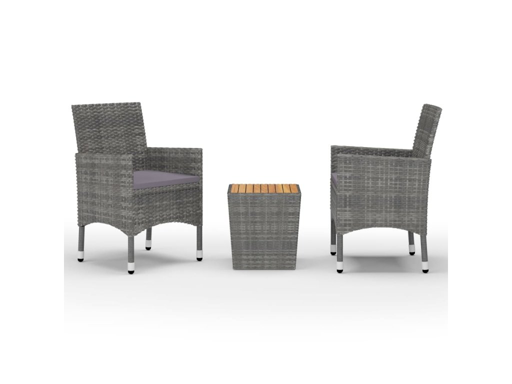 3dílný bistro set polyratan a akáciové dřevo šedý 3058363
