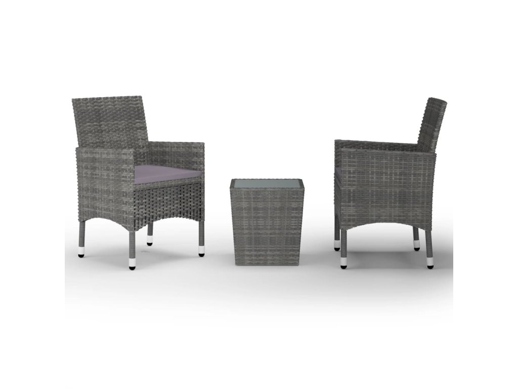 3dílný bistro set polyratan a tvrzené sklo šedý 3058359