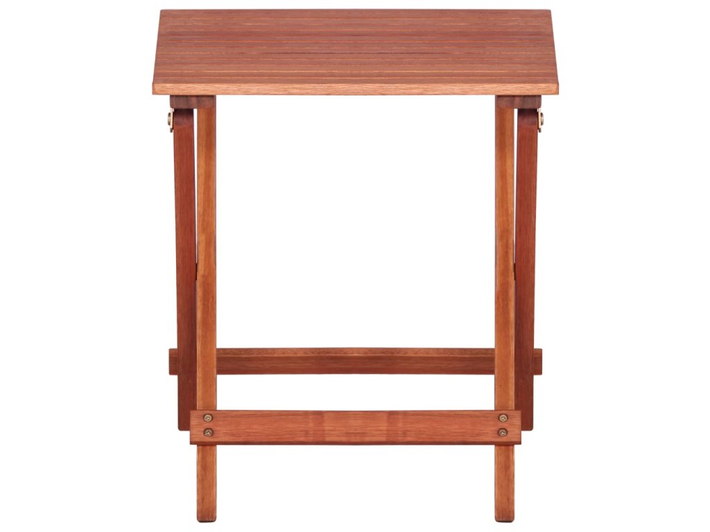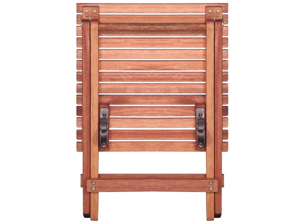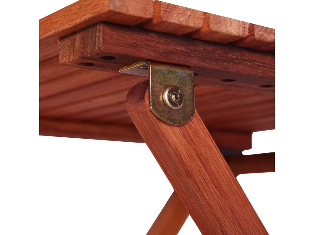 Skládací jídelní set je vyroben z masivního eukalyptového dřeva, které nepodléhá nepříznivým vlivům počasí a má dlouhou životnost. Olejovaný povrch navíc snadno očistíte navlhčeným hadříkem. Jelikož je celá sada zahradního nábytku skládací, můžete ji také velmi snadno uskladnit nebo přepravovat.