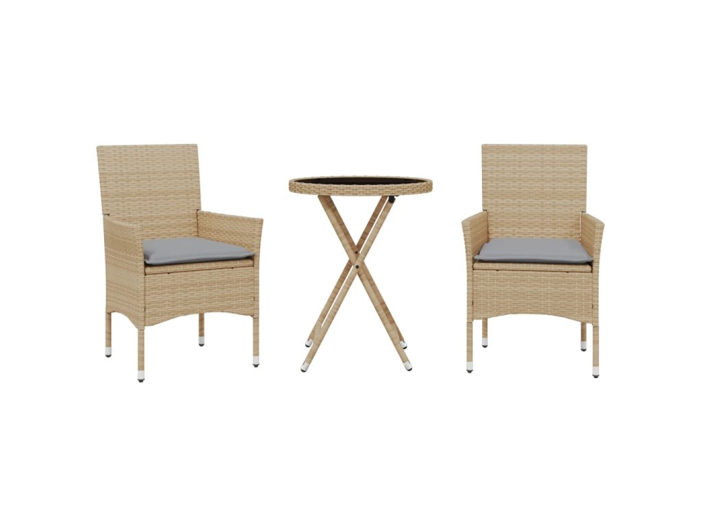 3dílný bistro set s poduškami béžový polyratan a sklo 3278751