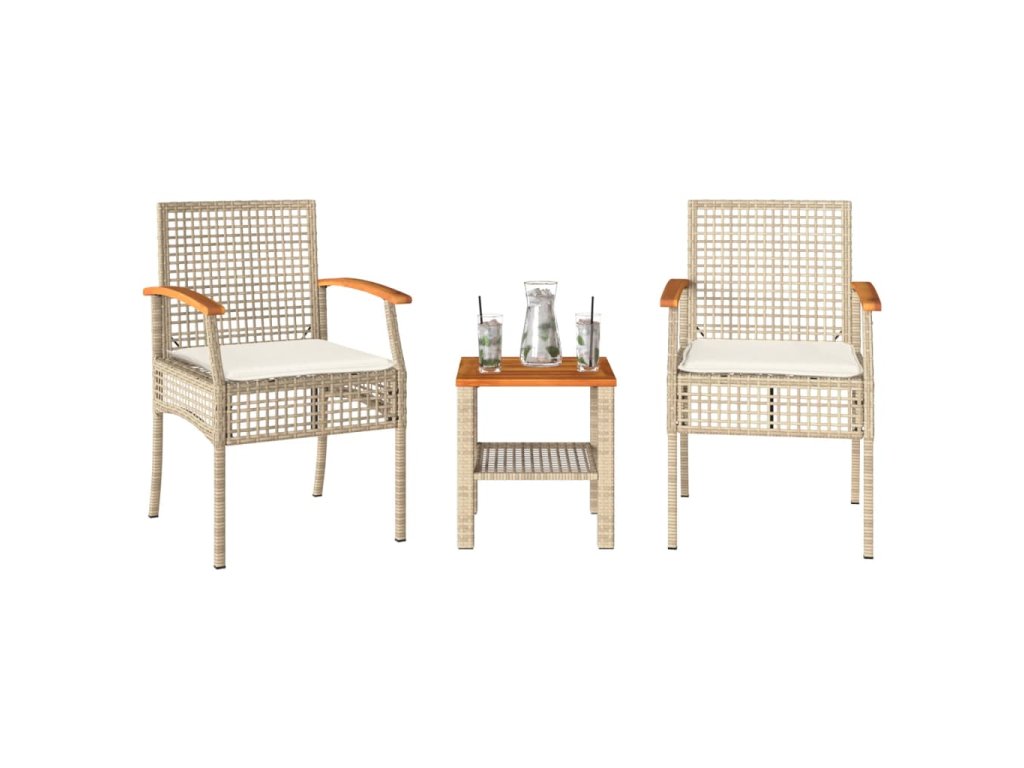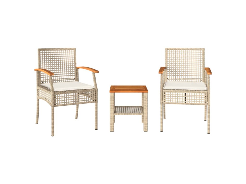 3dílný bistro set s poduškami béžový polyratan akáciové dřevo 366261