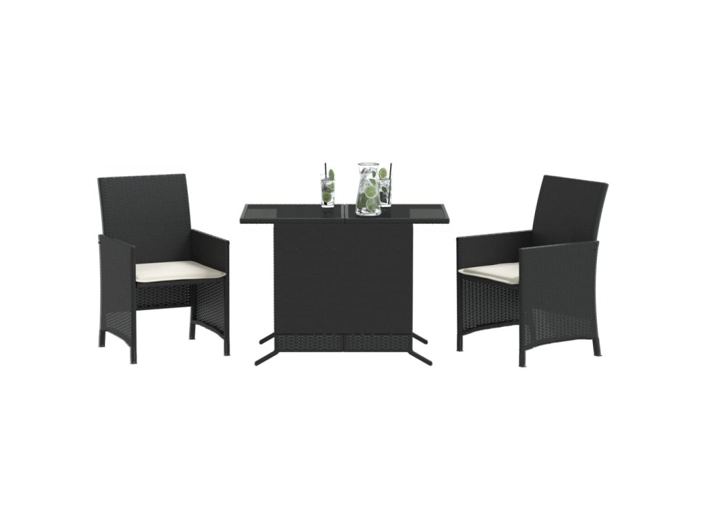 3dílný bistro set s poduškami černý polyratan 365116