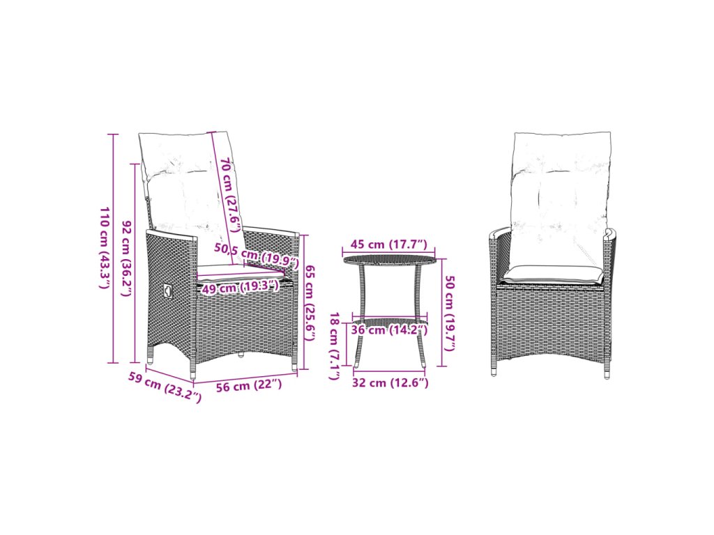 Vychutnejte si kávu nebo si popovídejte s rodinou a přáteli na zahradě, na dvorku nebo na balkoně u tohoto pohodlného bistro setu!