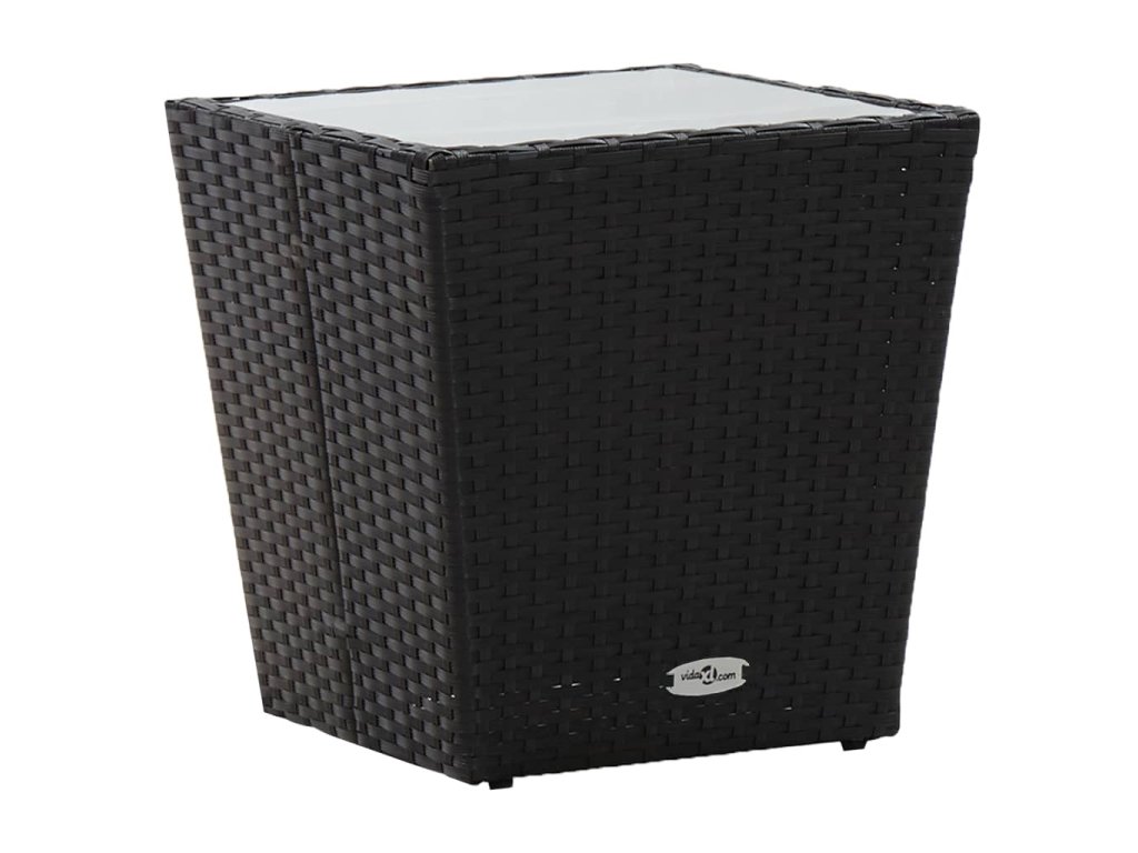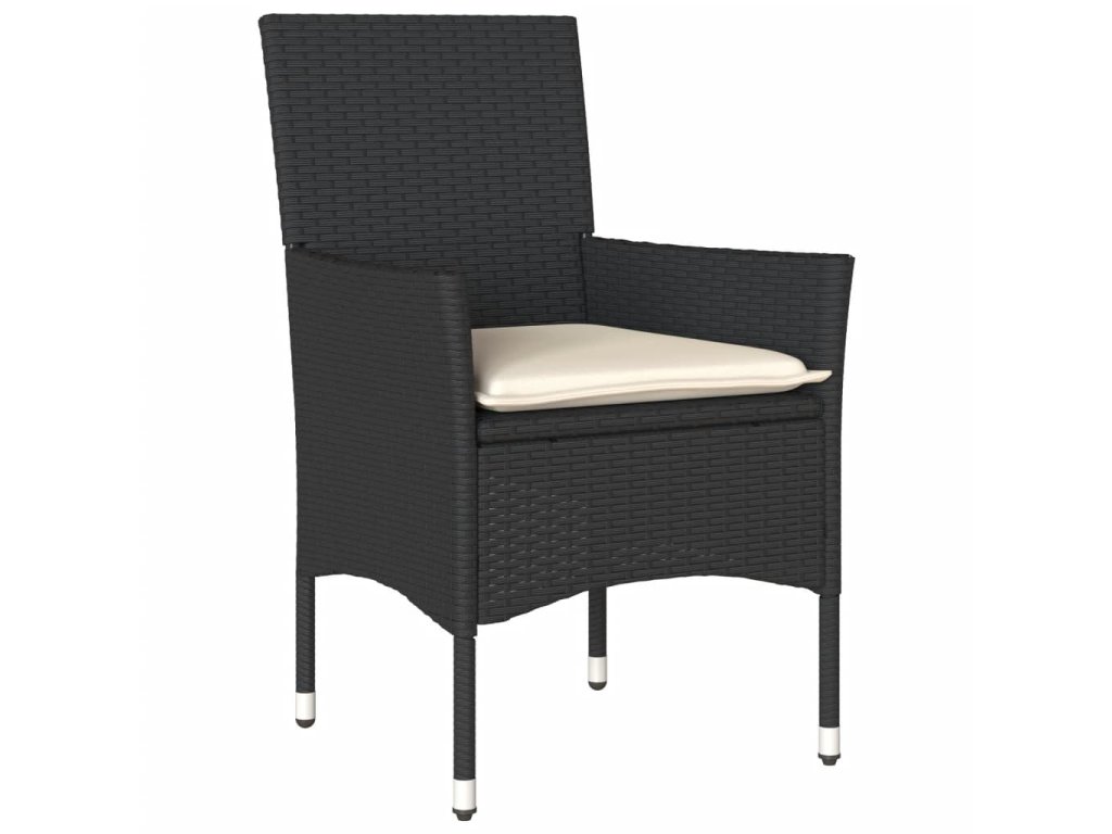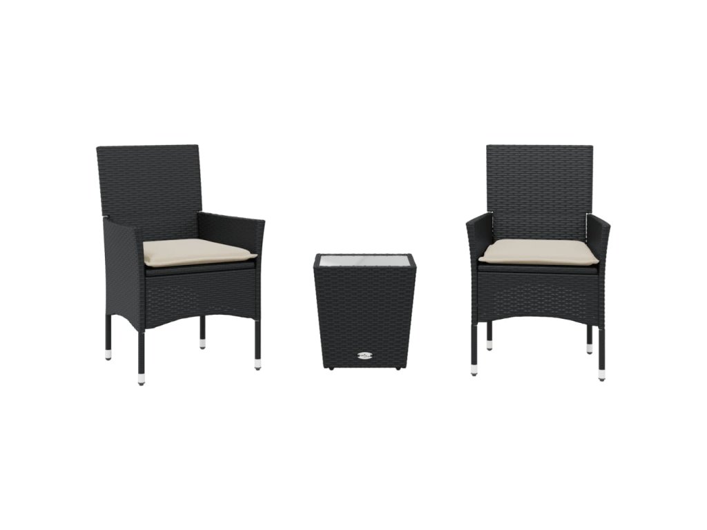 3dílný bistro set s poduškami černý polyratan a sklo 3278739