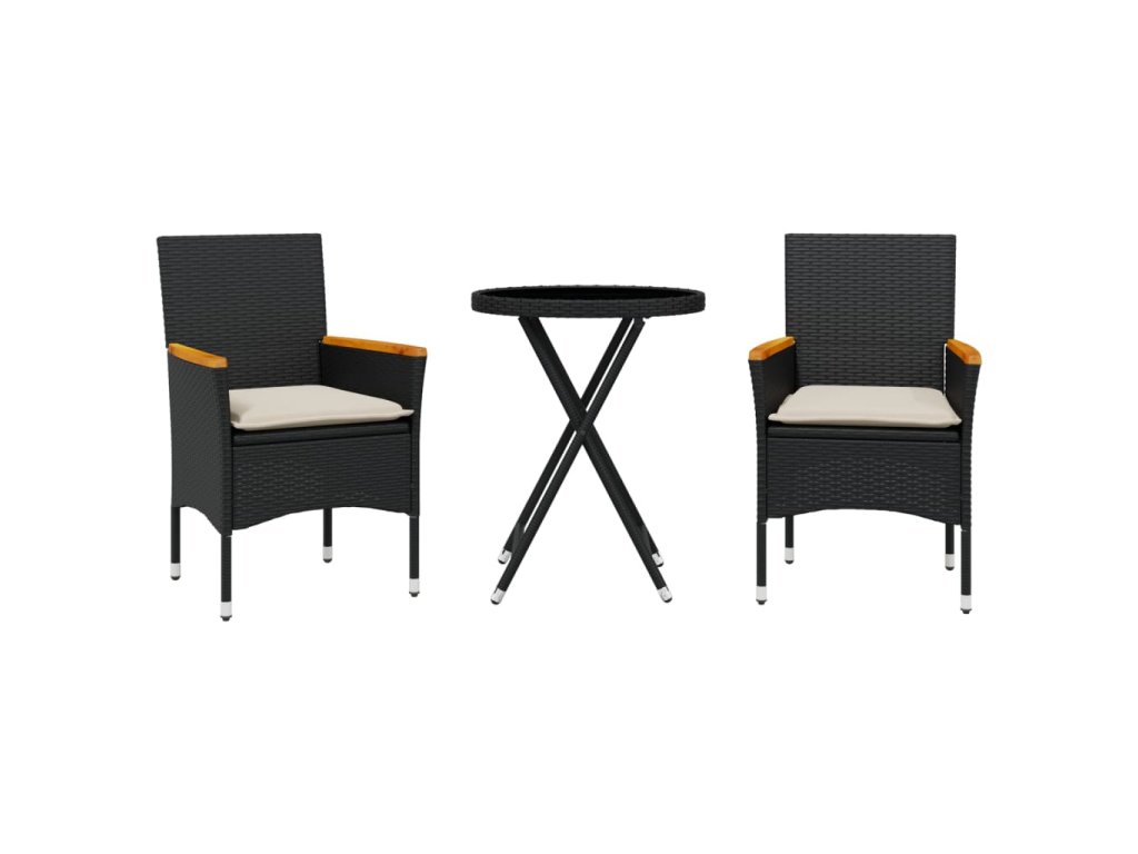 3dílný bistro set s poduškami černý polyratan a sklo 3278753