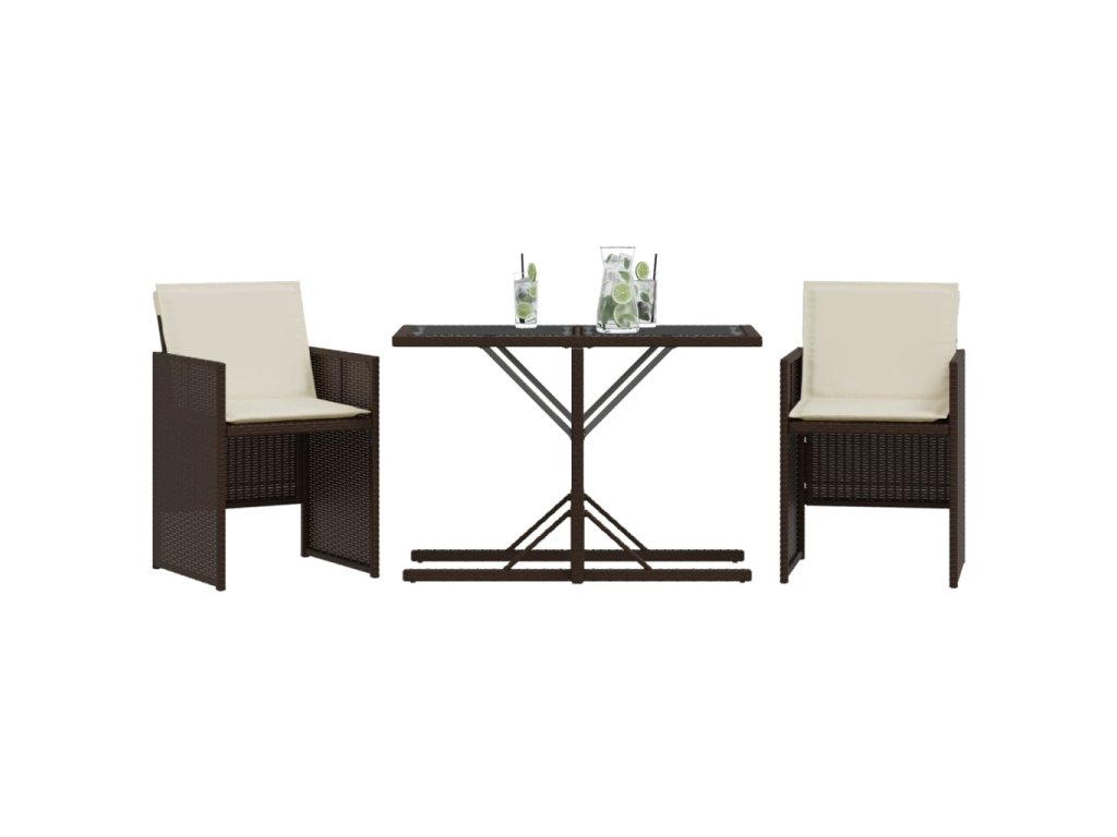 3dílný bistro set s poduškami hnědý polyratan 365065