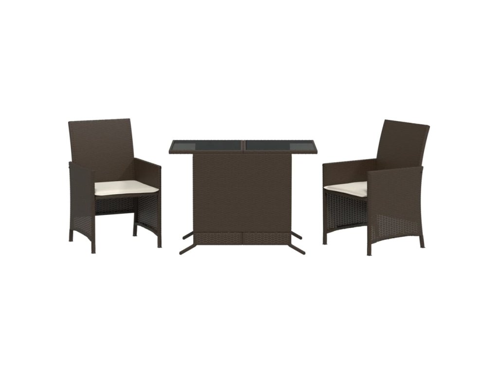 3dílný bistro set s poduškami hnědý polyratan 365118