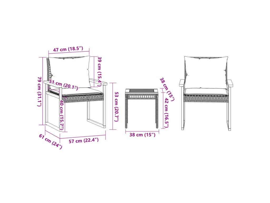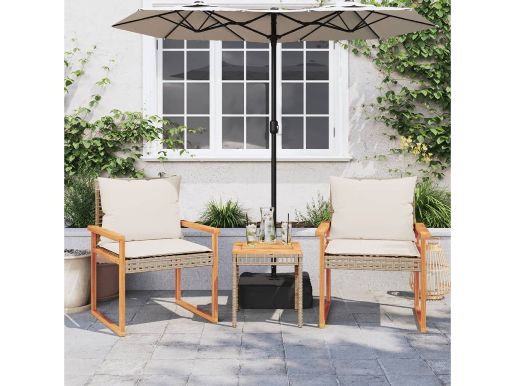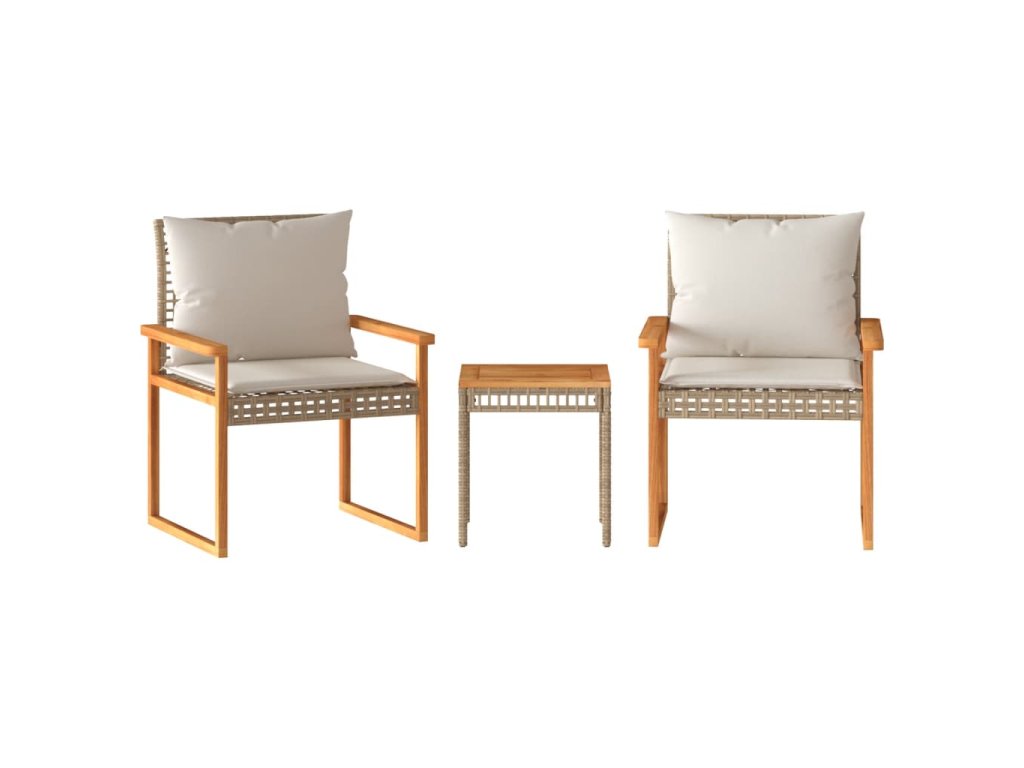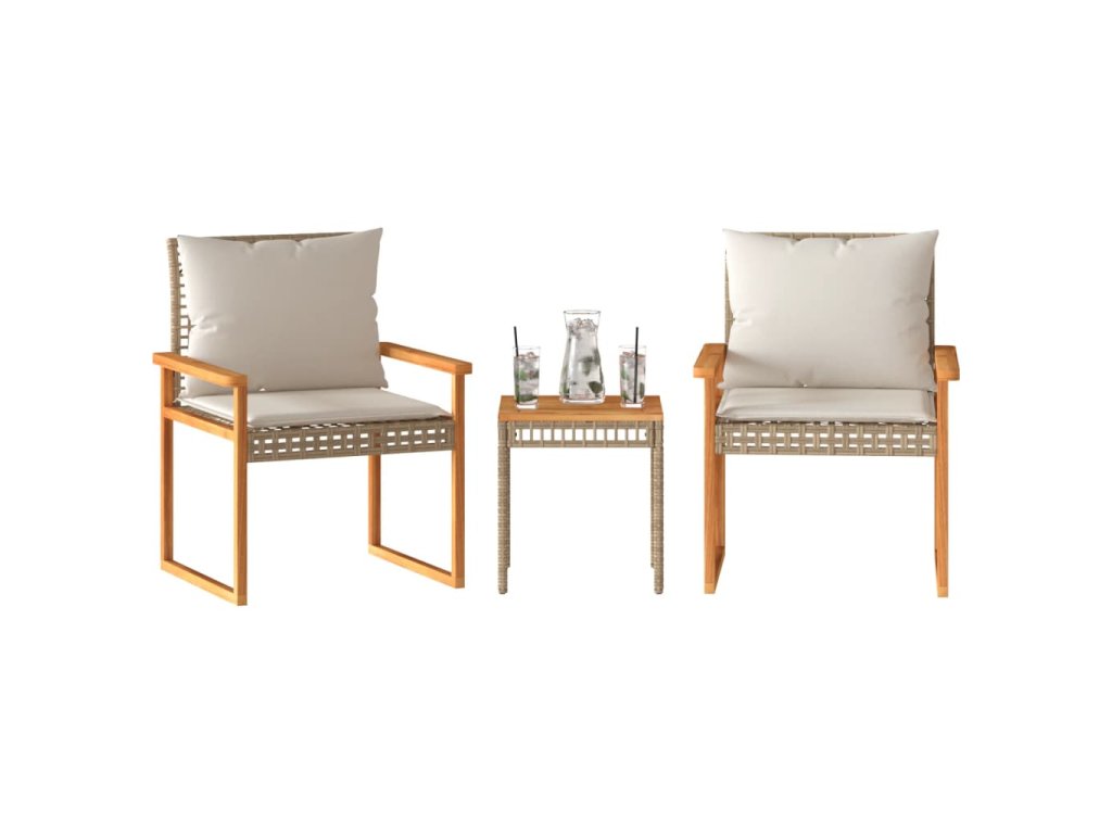 3dílný bistro set s poduškami mix béžové polyratan akácie 365861