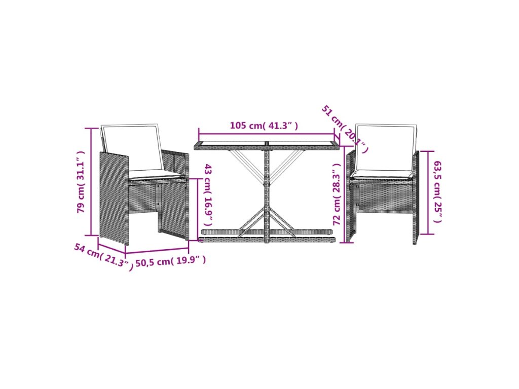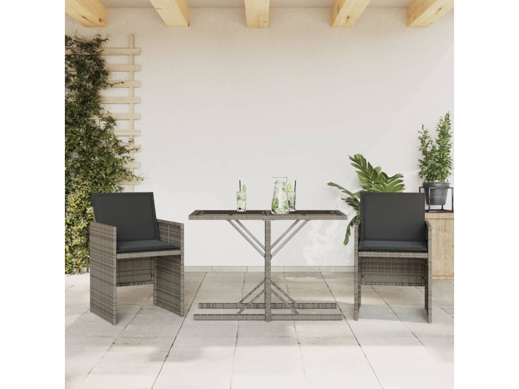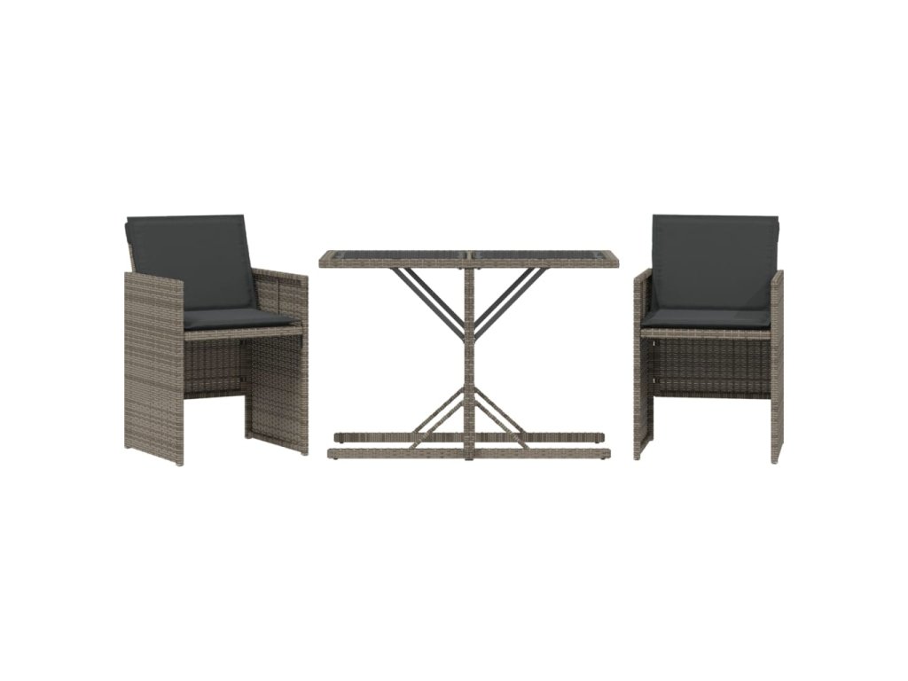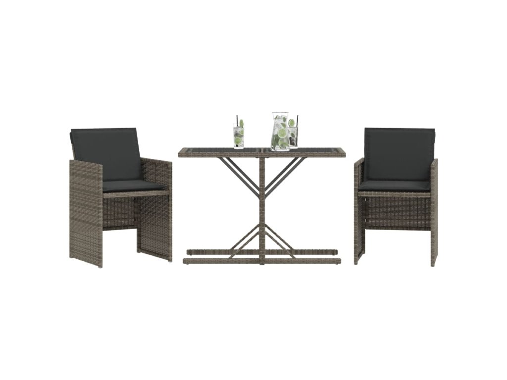 3dílný bistro set s poduškami šedý polyratan 365064
