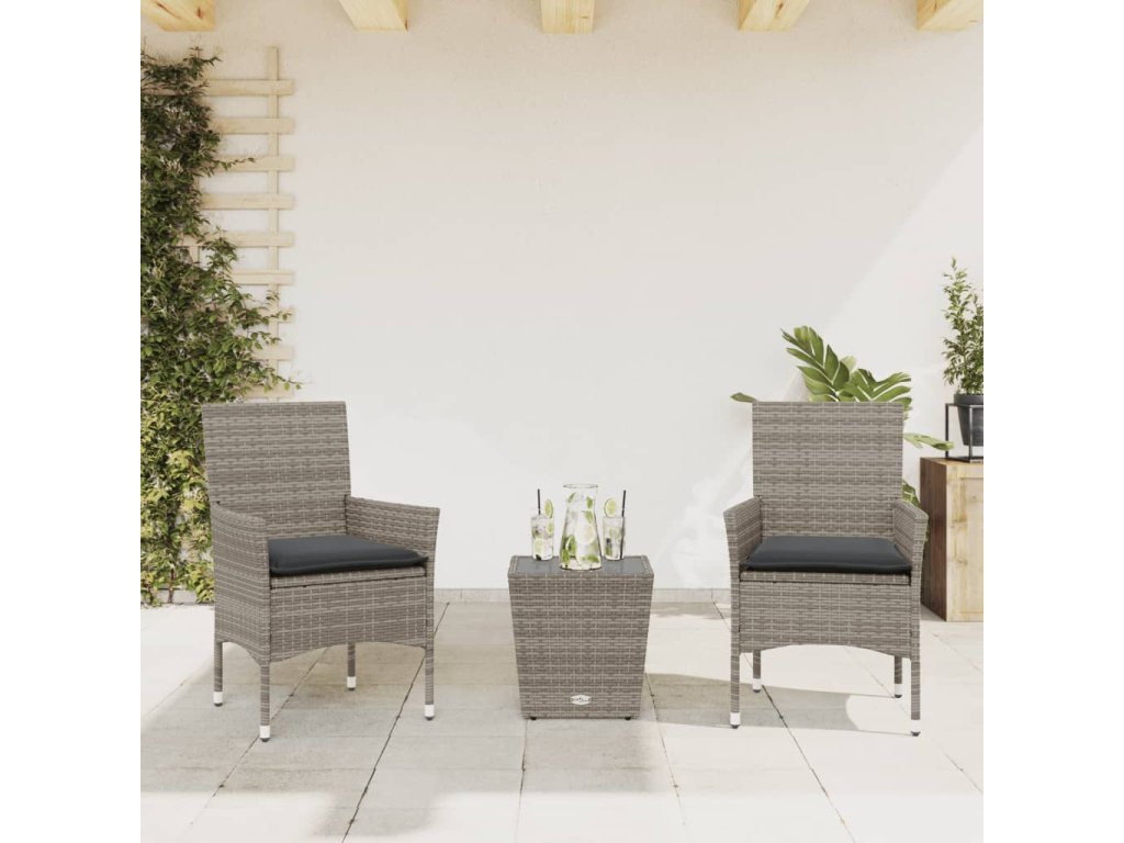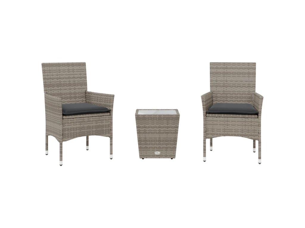 3dílný bistro set s poduškami šedý polyratan a sklo 3278742