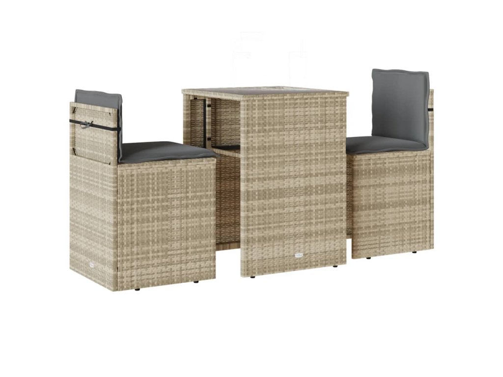 3dílný bistro set s poduškami světle šedý polyratan 4003874