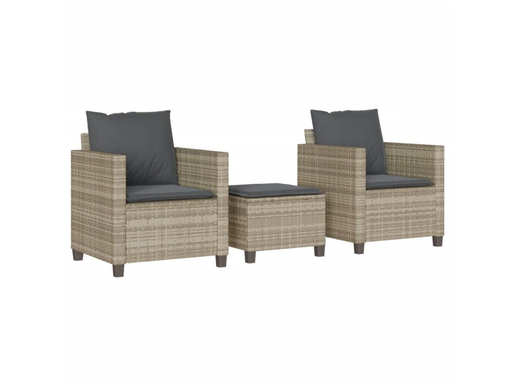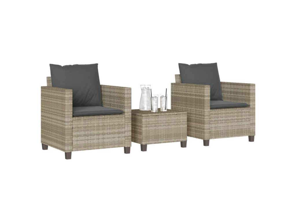 3dílný bistro set s poduškami světle šedý polyratan 4003901