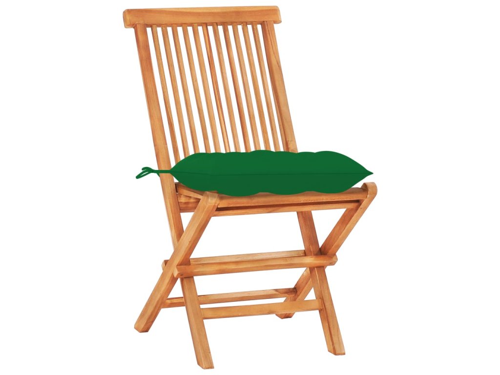 3dílný bistro set se zelenými poduškami masivní teakové dřevo 3063245