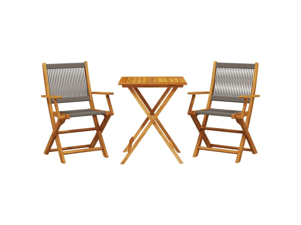 3dílný bistro set šedý polypropylen a masivní dřevo 3281806