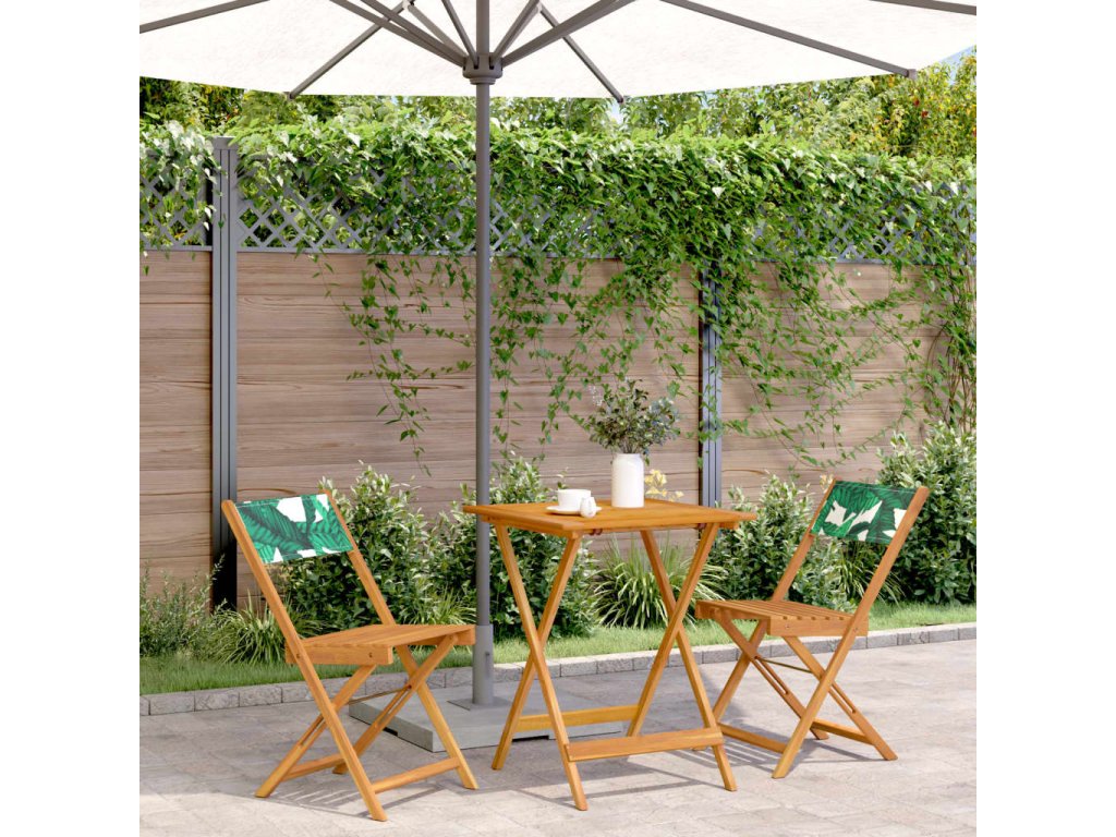 3dílný bistro set vzor listů textil a masivní dřevo 3281764