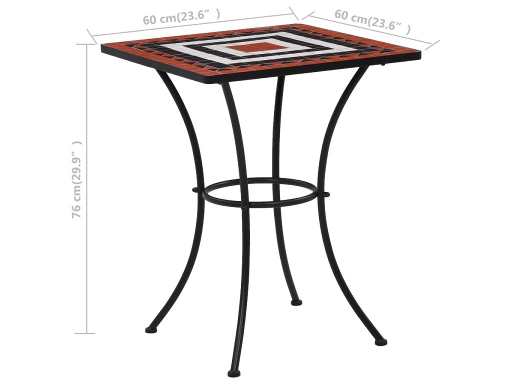 - Materiál: Železný rám s práškovým nástřikem + sedáky a stolní deska z keramických kachliček