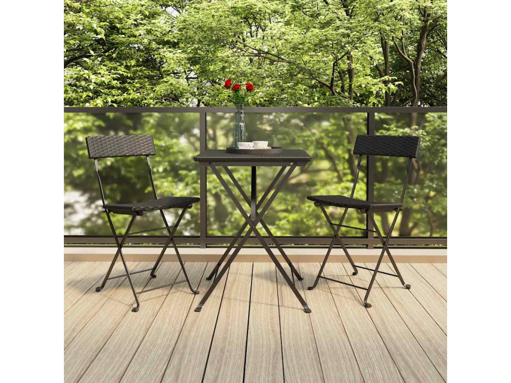 Tento 3dílný skládací bistro set z polyratanu je vynikající volbou pro stolování nebo odpočinek na zahradě, balkoně nebo terase.