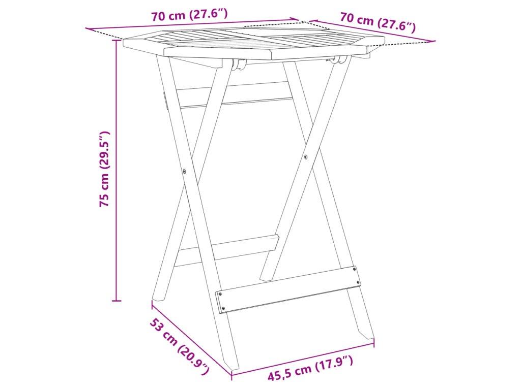 - Skládací provedení: Tento zahradní bistro set lze složit, abyste ušetřili místo, když se nepoužívá.