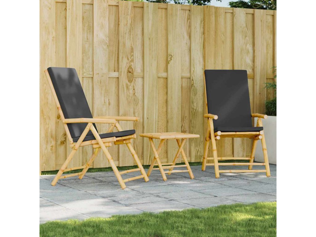 3dílný skládací bistro set s tmavě šedými poduškami bambus 3208932