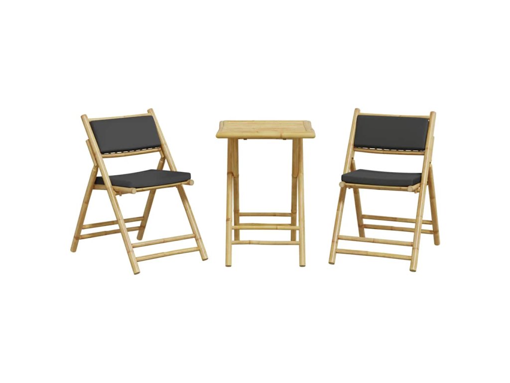 3dílný skládací bistro set s tmavě šedými poduškami bambus 3208934