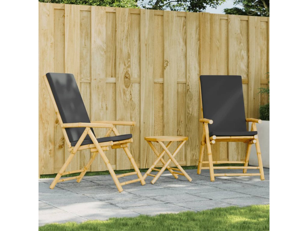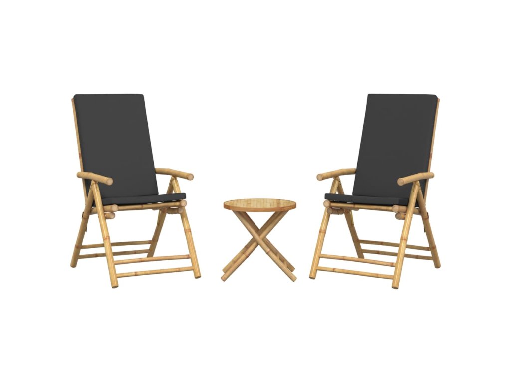 3dílný skládací bistro set s tmavě šedými poduškami bambus 3208938