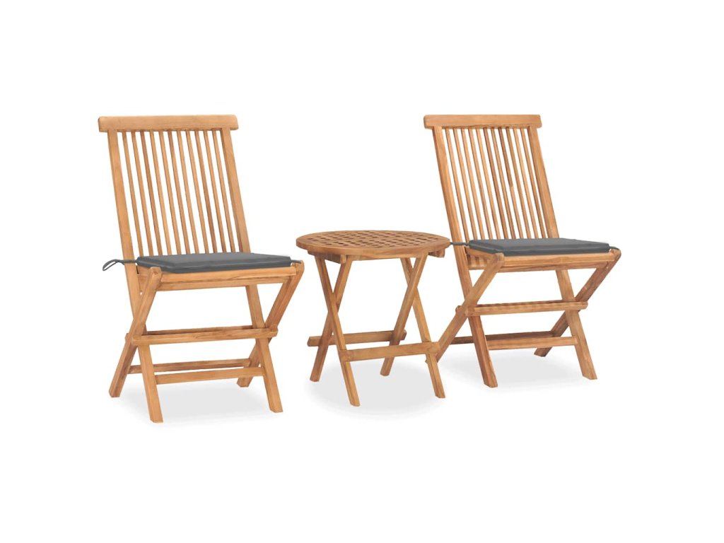 3dílný skládací zahradní jídelní set s poduškou masivní teak 3063172