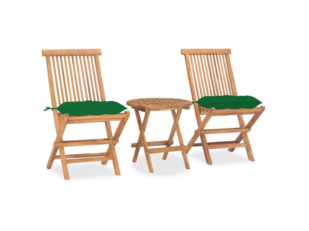 3dílný skládací zahradní jídelní set s poduškou masivní teak 3063191