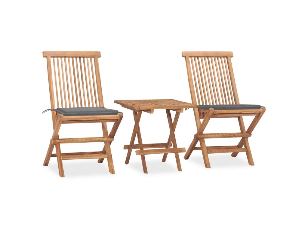 3dílný skládací zahradní jídelní set s poduškou masivní teak 3063199