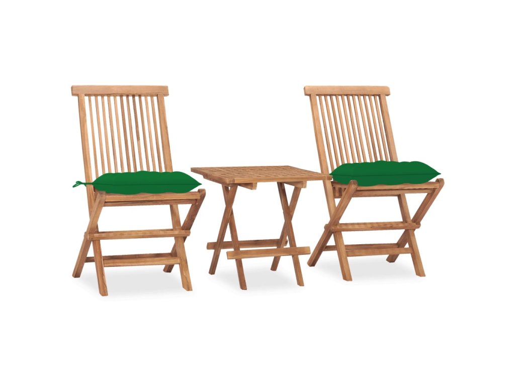 3dílný skládací zahradní jídelní set s poduškou masivní teak 3063218