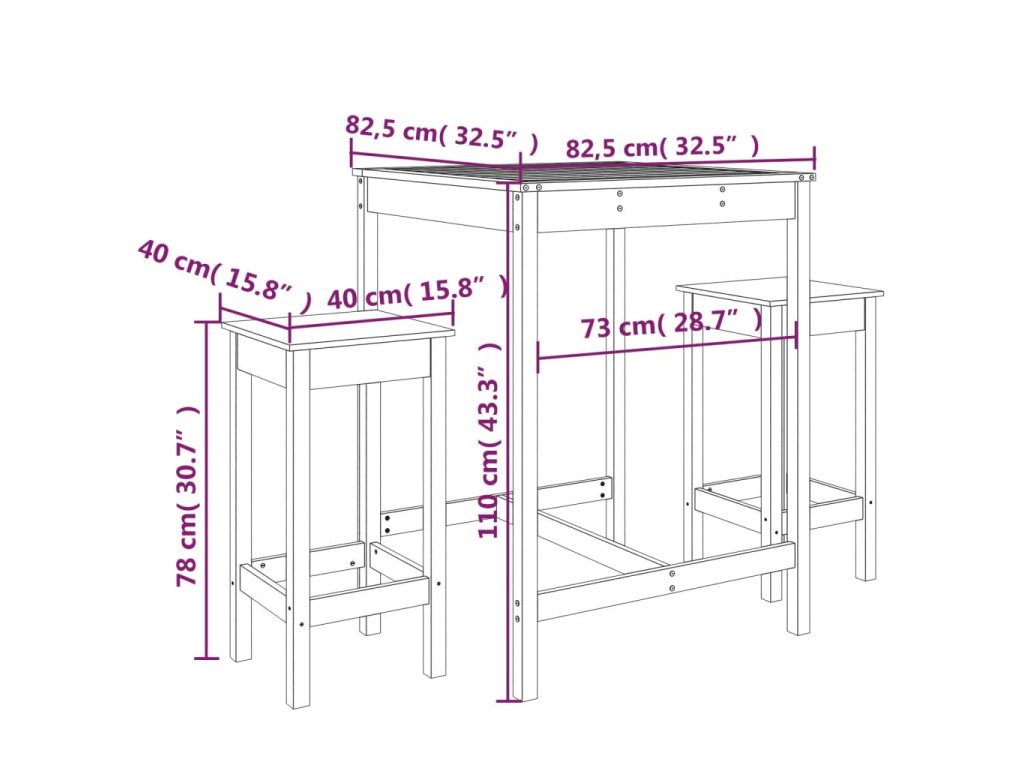 3dílný zahradní barový set bílý masivní borové dřevo 3154726