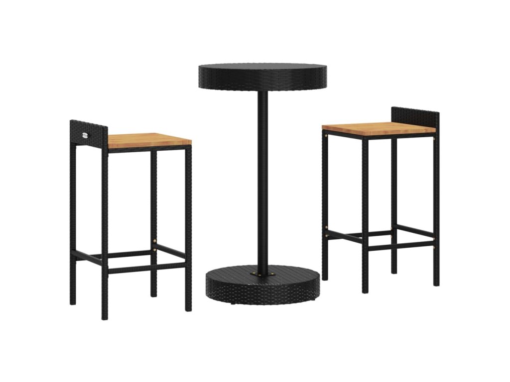 3dílný zahradní barový set černý polyratan a masivní akácie 3187714