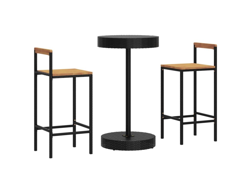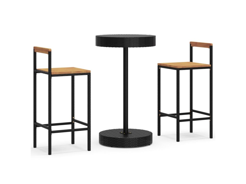 3dílný zahradní barový set černý polyratan a masivní akácie 3187718