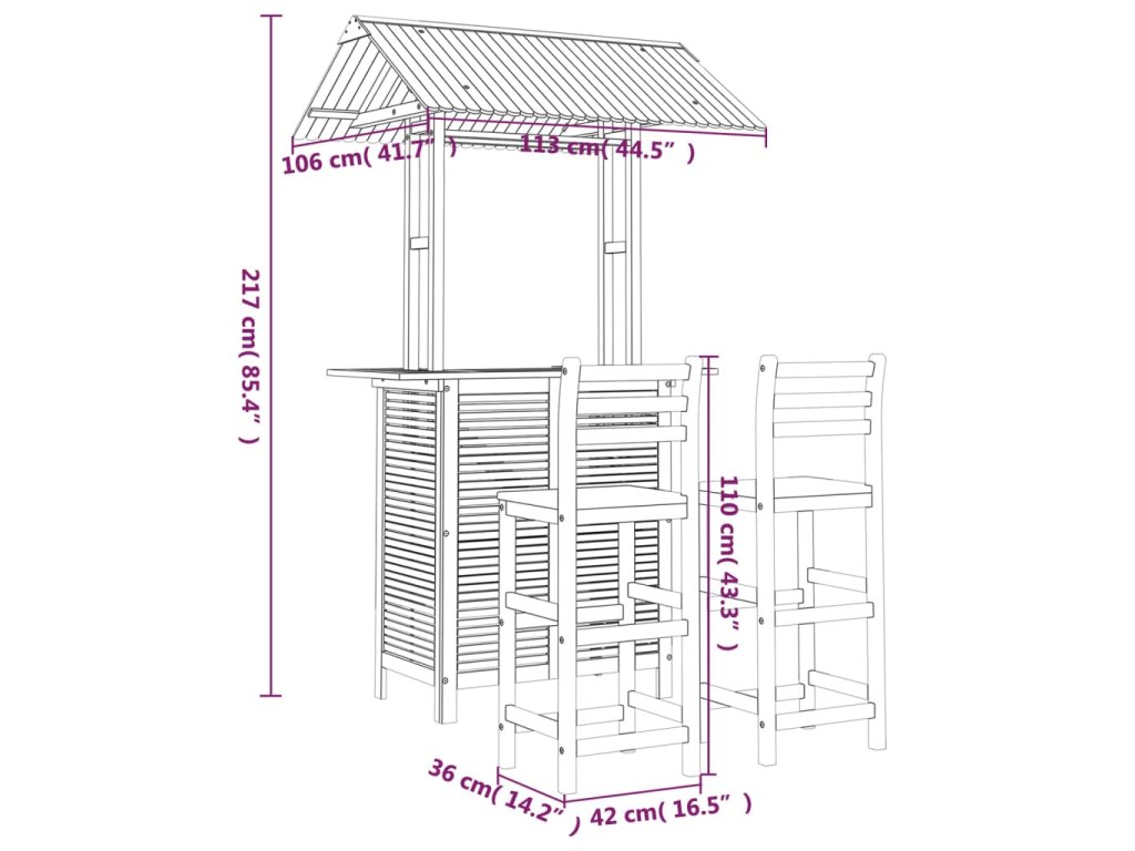 Tento dřevěný zahradní barový set se pyšní elegantním designem a je jako stvořený k tomu, aby se stal dominantou vaší zahrady, dvorku nebo terasy.