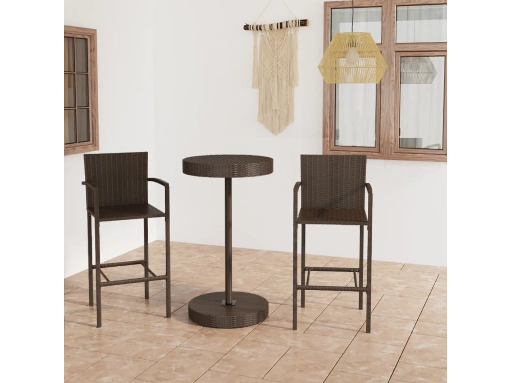 3dílný zahradní barový set polyratan hnědý 3064768