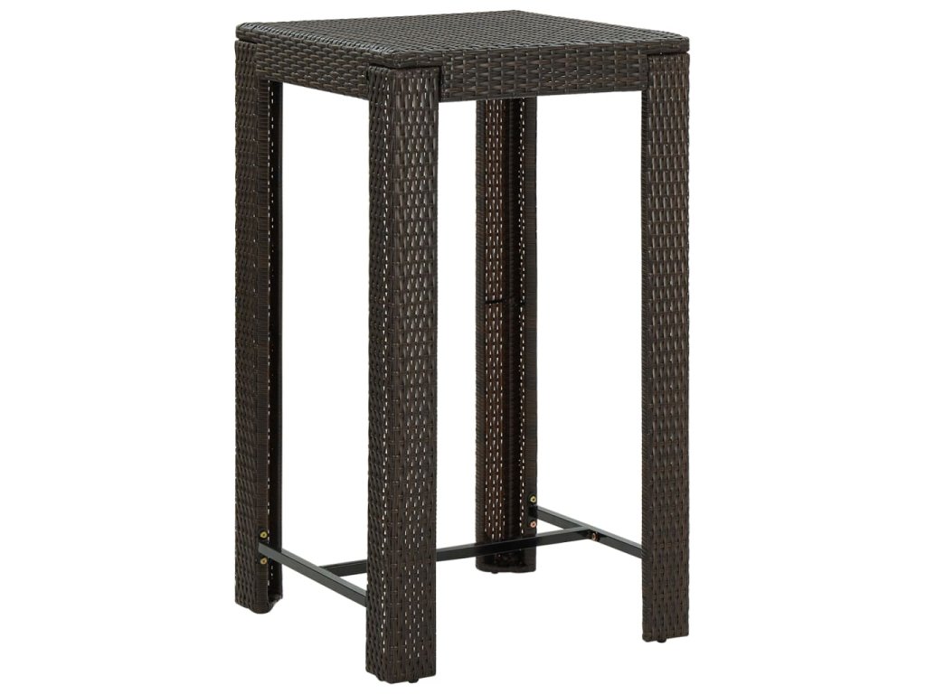 Základem barového stolu je rám z práškově lakované oceli, který mu dodává na stabilitě a odolnosti. Stolní deska vám skvěle poslouží k odkládání nápojů a občerstvení nebo k vystavení dekorativních předmětů. Stoličky mají pevnou konstrukci z oceli, která je opletená voděodolným PE ratanem, jsou tedy stabilní a snadno se přesouvají. Opěrka na nohy vám navíc při sezení zajistí další pohodlí.