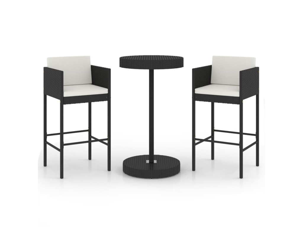 3dílný zahradní barový set s poduškami polyratan černý 3094772