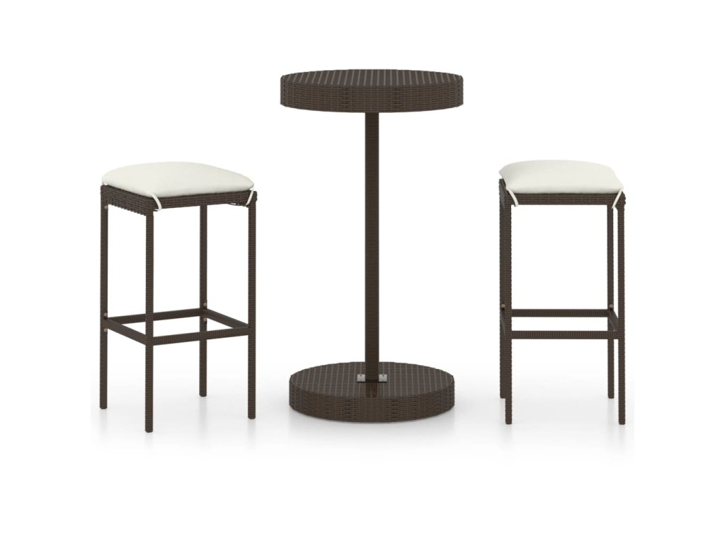 3dílný zahradní barový set s poduškami polyratan hnědý 3064758
